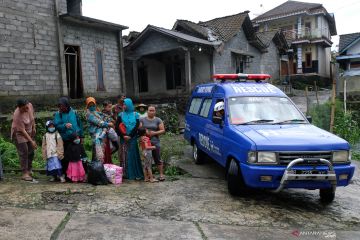 Sejumlah pengungsi bersiap menaiki kendaraan penjemput saat evakuasi pengungsi gunung Merapi di Desa Babadan 2, Paten, Dukun, Magelang, Jawa Tengah, Kamis (7/1/2021). Seiring meningkatnya aktivitas vulakanik gunung Merapi, ratusan warga kelompok rentan yakni lansia, anak-anak, ibu hamil dan penyandang disabilitas yang berada di kawasan rawan bencana kembali diungsikan setelah sebelumnya pulang karena merasa bosan di pengungsian. ANTARA FOTO/Anis Efizudin/hp.
