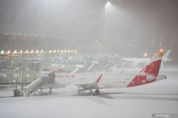 Suasana Bandara Adolfo Suarez Barajas yang diabadikan saat hujan salju, di Madrid, Spanyol, Sabtu (9/1/2021). ANTARA FOTO/Reuters-Juan Medina/hp.