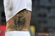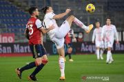 Pemain AC Milan Zlatan Ibrahimovic melepas bajunya usai melawan Cagliari pada pertandingan Liga Italia Serie A di stadion Sardegna Arena, Cagliari, Selasa (19/1/2021) dini hari. Dua gol Ibrahimovic antar AC Milan menang 2-0 dan kokoh di puncak klasemen sementara. ANTARA FOTO/REUTERS/Alberto Lingria/pras.