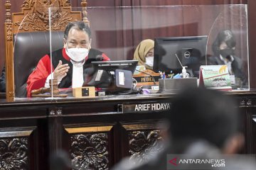 Hakim Konstitusi Arief Hidayat memimpin sidang panel III saat sidang Perselisihan Hasil Pemilihan Wali Kota Surabaya (Pilwali Surabaya) di Mahkamah Konstitusi, Jakarta, Selasa (26/1/2021). Mahkamah Konstitusi mulai menyidangkan Perselisihan Hasil Pilkada tahun 2020 dengan agenda pemeriksaan pendahuluan terhadap 35 perkara dari total 132 perkara yang terdaftar. ANTARA FOTO/M Risyal Hidayat/rwa.