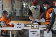 Tersangka Pejabat Pembuat Komitmen di Kementerian Sosial Matheus Joko Santoso (kiri) dan pihak swasta Harry Sidabuke (tengah) mengikuti rekonstruksi perkara dugaan korupsi pengadaan bantuan sosial (bansos) penanganan COVID-19 di Gedung KPK, Rasuna Said, Jakarta, Senin (1/2/2021). KPK menggelar rekonstruksi yang menghadirkan ketiga tersangka yakni Pejabat Pembuat Komitmen di Kementerian Sosial Adi Wahyono dan Matheus Joko Santoso serta pihak swasta Harry Sidabuke guna mengumpulkan bukti-bukti pendukung terkait dugaan korupsi bansos yang melibatkan mantan Menteri Sosial Juliari Batubara. ANTARA FOTO/Indrianto Eko Suwarso/rwa.