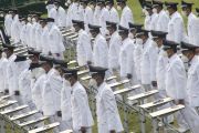 Sejumlah kepala desa terpilih mengikuti Pelantikan Kepala Desa se-Kabupaten Bogor di Lapangan Tegar Beriman, Cibinong, Kabupaten Bogor, Jawa Barat, Jumat (5/2/2021). Pemerintah Kabupaten Bogor tetap melantik 88 kepala desa periode 2021-2027 hasil pilkades serentak 20 Desember 2020 secara tatap muka meski masih dalam situasi pandemi COVID-19. ANTARA FOTO/Yulius Satria Wijaya/hp.