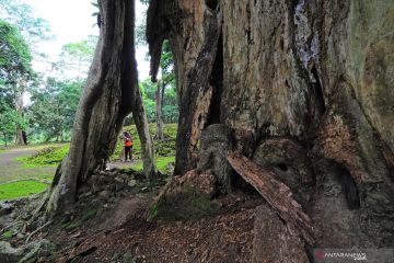 Juru pelihara Candi Koto Mahligai menyapu bagian dalam situs di Kawasan Percandian Muarajambi, Muarojambi, Jambi, Sabtu (13/2/2021). Situs yang berada di sebelah barat gerbang masuk Kawasan Percandian Muarajambi tersebut dirawat oleh dua orang juru pelihara dari Balai Pelestarian Cagar Budaya (BPCB) Jambi. ANTARA FOTO/Wahdi Septiawan/hp.
