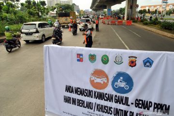Petugas gabungan dari Dishub Kota Bogor, Polresta Bogor Kota, Satpol PP Kota Bogor, dan Kodim 0606/Kota Bogor mengatur kendaraan bermotor yang sesuai dengan plat nomor ganjil saat pemberlakuan aturan ganjil-genap di Pos Sekat Simpang Yasmin, Kota Bogor, Jawa Barat, Sabtu (13/2/2021). Pemerintah Kota Bogor memberlakukan sanksi denda administratif untuk pelanggar aturan ganjil-genap sebesar Rp50 ribu hingga Rp250 ribu dengan tujuan agar masyarakat mematuhi protokol kesehatan pencegahan penularan COVID-19. ANTARA FOTO/Arif Firmansyah/hp.