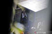 Seorang pengunjuk rasa yang terluka duduk di mobil tahanan usai diamankan polisi saat aksi protes menentang kudeta militer di Kota Yangon, Myanmar, Jumat (26/2/2021). ANTARA FOTO/REUTERS/Stringer/wsj.