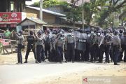 Polisi memblokade jalan saat mengamankan aksi protes menentang kudeta militer di Kota Naypyitaw, Myanmar, Jumat (26/2/2021). ANTARA FOTO/REUTERS/Stringer/wsj.