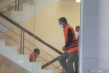 Tersangka Gubernur nonaktif Sulawesi Selatan Nurdin Abdullah (kanan) bersiap menjalani pemeriksaan di Gedung Komisi Pemberantasan Korupsi (KPK), Jakarta, Jumat (5/3/2021). Nurdin Abdullah diperiksa penyidik KPK sebagai tersangka terkait kasus dugaan suap proyek infrastruktur di lingkungan Pemerintah Provinsi Sulawesi Selatan dengan barang bukti uang sekitar dua miliar rupiah. ANTARA FOTO/Reno Esnir/foc.
