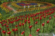 Foto udara suasana Taman Kincir Jabal Nur di Desa Sukasetia, Kecamatan Cisayong, Kabupaten Tasikmalaya, Jawa Barat, Selasa (9/3/2021). Wisata alam taman kincir warna-warni yang berada di kaki Gunung Talaga Bodas menyajikan 15.000 kincir angin untuk menjadi daya tarik wisatawan, dengan manyajikan wahana kolam renang, resto cafe, dan penginapan serta camping ground. ANTARA FOTO/Adeng Bustomi/aww.