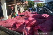 Pekerja membongkar muat bawang merah impor ilegal ke mobil barang saat dihibahkan kepada sejumlah dayah (pesantren) di Kanwil Bea Cukai, Banda Aceh, Aceh, Kamis (18/3/2021). Kanwil Bea Cukai Aceh menghibahkan sebanyak 17 ton bawang merah impor ilegal hasil penangkapan di Aceh Utara kepada sejumlah pesantren di Aceh setelah diuji layak konsumsi. ANTARA FOTO/Ampelsa/rwa.
