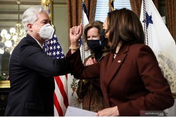Direktur CIA William Burns mengucapkan sumpah jabatannya saat ia dilantik oleh Wakil Presiden Amerika Serikat Kamala Harris, di Gedung Putih, Washington, AS, Selasa (23/3/2021). ANTARA FOTO/Reuters-Jonathan Ernst/hp.