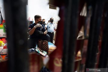 Petugas memeriksa narapidana di dalam sel Lembaga Pemasyarakatan (Lapas) Kelas 2B Sorong, Papua Barat, Jumat (9/4/2021). Kemenkum HAM wilayah Papua Barat bersama tim gabungan TNI, Polri dan Badan Narkotika Nasional (BNN) Provinsi Papua Barat merazia sel Lapas untuk memastikan keamanan dan ketertiban warga binaan atas barang bawaan di dalam tahanan. ANTARA FOTO/Olha Mulalinda/wsj.