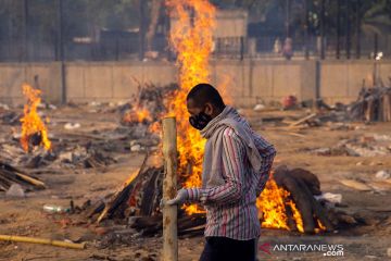 Kremasi massal korban yang meninggal akibat COVID-19 terlihat di tempat krematorium di New Delhi, India, (22/4/2021). ANTARA FOTO/ REUTERS / Danish Siddiqui/aww.