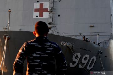 Prajurit TNI AL bersiap-siap di anjungan KRI dr Soeharso-990 ketika kapal tersebut akan berlayar di Pelabuhan Tanjung Wangi, Banyuwangi, Jawa Timur, Sabtu (24/4/2021). KRI dr Soeharso 990 kembali ke perairan Bali untuk memulai pencarian KRI Nanggala-402 yang hilang kontak saat menggelar latihan penembakan di utara Bali pada Rabu (21/4).. ANTARA FOTO/Zabur Karuru/hp.