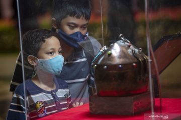 Dua bocah mengamati salah satu koleksi dalam Pameran Artefak Nabi Muhammad SAW di Jakarta Islamic Center, Koja, Jakarta, Sabtu (24/4/2021). Pameran yang berlangsung hingga 3 Mei 2021 tersebut memamerkan 35 barang peninggalan Nabi Muhammad dan para sahabatnya, mulai dari perlengkapan perang, tongkat hingga janggut dan rambut Nabi. Koleksi artefak tersebut dikumpulkan dari berbagai tempat bersejarah, antara lain Mesir, Kairo, Mekah dan Madinah. ANTARA FOTO/Aditya Pradana Putra/foc.