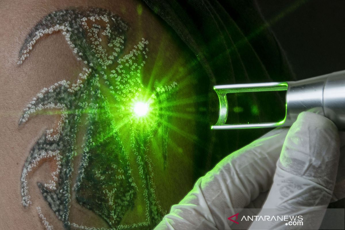 Relawan Islamic Medical Service (IMS) menghapus tato peserta saat program hapus tato gratis di Masjid Baitul Muhyi, Jakarta Timur, Kamis (29/4/2021). Sebanyak 60 peserta dari warga marjinal di Jakarta Timur mengikuti hapus tato secara gratis yang diadakan oleh IMS bekerja sama dengan BAZNAS DKI Jakarta selama bulan Ramadhan 2021 dengan target sekitar 500 orang. ANTARA FOTO/M Risyal Hidayat/rwa.