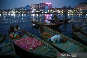 Seorang tukang perahu melakukan shalat Isya saat bulan puasa Ramadhan di tepi Sungai Buriganga, Dhaka, Bangladesh, Sabtu (1/5/2021). ANTARA FOTO/REUTERS/Mohammad Ponir Hossain/rwa.