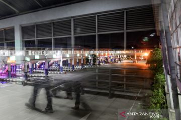 Penumpang melintas di Terminal Purabaya, Bungurasih, Sidoarjo, Jawa Timur, Selasa (4/5/2021). Jelang pemberlakuan larangan mudik Hari Raya Idul Fitri 1442 Hijriah pada 6-17 Mei 2021 mendatang, aktivitas penumpang naik dan turun di Terminal Purabaya masih terpantau sepi. ANTARA FOTO/Umarul Faruq/rwa.