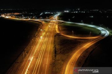 Suasana ruas Jalan Tol Kanci-Pejagan yang sepi di simpang susun Pejagan, Brebes, Jawa Tengah, Kamis (6/5/2021). Di hari pertama penerapan larangan mudik 2021 sejumlah ruas tol Trans Jawa di Jawa Tengah sepi yang didominasi kendaraan angkutan barang. ANTARA FOTO/Hafidz Mubarak A/aww.