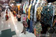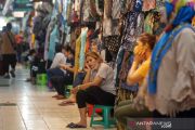 Pedagang batik menunggu pembeli di Pasar Beringharjo, Yogyakarta, Senin (10/05/2021). Sejumlah pedagang mengaku, jelang Idul Fitri 1442 H penjualan batik di Pasar Beringharjo sepi pembeli menyusul adanya larangan mudik. ANTARA FOTO/Andreas Fitri Atmoko/rwa.