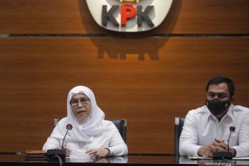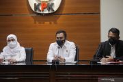 Wakil Ketua KPK Lili Pintauli Siregar (kiri) bersama Kepala Badan Reserse Kriminal (Kabareskrim) Komjen Pol Agus Andrianto (tengah) dan Juru Bicara KPK Ali Fikri (kanan) menyampaikan keterangan kepada wartawan terkait Operasi Tangkap Tangan (OTT) oleh Tim Gabungan KPK dan Bareksrim Mabes Polri di Gedung KPK Merah Putih, Jakarta, Senin (10/5/2021). Pada OTT tersebut Tim Penyidik KPK dan Polri mengamankan Bupati Kabupaten Nganjuk, Jawa Timur (Jatim) Novi Rahman Hidayat dan empat orang camat Wilayah Kabupaten Nganjuk serta barang bukti uang sekitar Rp647 juta dan sejumlah barang yang diduga suap jual beli jabatan di lingkungan Pemkab Nganjuk. ANTARA FOTO/ Reno Esnir/hp.