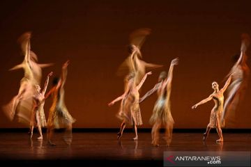 Anggota The Royal Ballet berlatih "Within The Golden Hour" oleh Christopher Wheeldon yang merupakan bagian dari program campuran "21st-Century Choreographers", yang akan dipentaskan di Royal Opera House mulai 18 Mei mendatang saat karantina mulai dilonggarkan di tengah pandemi COVID-19 di London, Inggris, Jumat (14/5/2021) waktu setempat. ANTARA FOTO/REUTERS/Toby Melville/wsj.