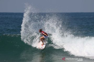 Peselancar Stephanie Gilmore, yang akan mewakili Australia di Olimpiade Musim Panas Tokyo 2020, beraksi saat mengikuti kompetisi Rip Curl Narrabeen Classic di pinggiran Narrabeen di utara Sydney, Australia, (19/5/2021). ANTARA FOTO/REUTERS / Loren Elliott/aww.