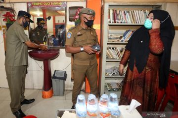 Petugas gabungan dari Satpol PP, TNI, Polr,i dan BPDB Aceh Besar mengecek dan merazia perlengkapan protokol kesehatan (prokes) dan mensosialisasikan jam operasional warung kopi di Aceh Besar, Aceh, Selasa (25/5/2021). Pemerintah Kabupaten Aceh Besar mengimbau pemilik warung kopi dan restoran untuk tutup pada pukul 23.00 WIB dan membuka kembali pada pukul 05.30 WIB sebagai upaya mencegah penyebaran dan penularan COVID-19 dan menindaklanjuti instruksi gubernur tentang Pemberlakuan Pembatasan Kegiatan Masyarakat (PPKM) berbasis mikro. ANTARA FOTO / Irwansyah Putra/hp.