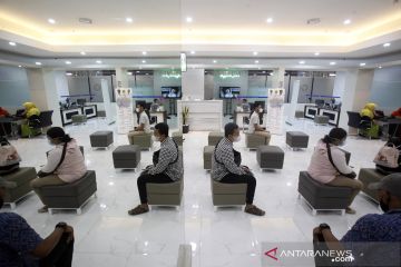 Sejumlah warga antre di Mal Pelayanan Publik Kabupaten Bogor di Aeon Mall, Sentul, Kabupaten Bogor, Jawa Barat, Kamis (3/6/2021). Mal Pelayanan Publik yang baru diresmikan Pemerintah Kabupaten Bogor tersebut sedikitinya menyediakan pelayanan dari sembilan instansi untuk melayani masyarakat secara terpadu dan satu pintu. ANTARA FOTO/Yulius Satria Wijaya/rwa.
