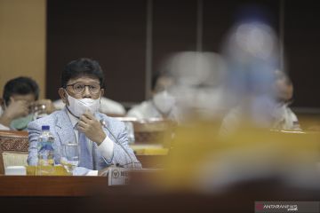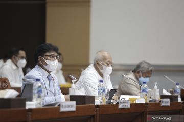 Menteri Komunikasi dan Informatika Johnny G Plate mengikuti rapat kerja dengan Komisi I DPR di Kompleks Parlemen, Senayan, Jakarta, Senin (7/6/2021). Rapat tersebut membahas Rencana Kerja dan Anggaran Kementerian/Lembaga (RKA K/L) dan Rencana Kerja Pemerintah Kementerian/Lembaga (RKP K/L) Kemkominfo Tahun 2022. ANTARA FOTO/Dhemas Reviyanto/hp.