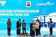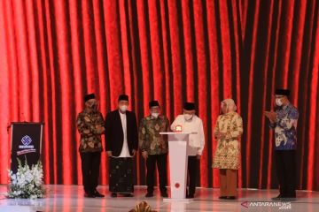 Wakil Presiden Maâruf Amin (ketiga kanan) didampingi Menteri Ketenagakerjaan Ida Fauziyah (kedua kanan), Ketua Dewan Komisioner OJK Wimboh Santoso (kiri), Gubernur Jawa Barat Ridwan Kamil (kanan), Wakil Ketua DPR Muhaimin Iskandar (ketiga kiri) dan Pimpinan Pondok Pesantren Cipasung KH. Bunyamin Ruhiat meresmikan Bank Wakaf Mikro (BWM) dan Balai Latihan Kerja di Pondok Pesantren Cipasung, Tasikmalaya, Jawa Barat, Selasa (8/6/2021). Pendirian BWM terus dilakukan OJK bersama pemerintah untuk mendorong pengembangan usaha mikro syariah serta pemberdayaan masyarakat sekitar pesantren. ANTARA FOTO/Humas OJK/hp.