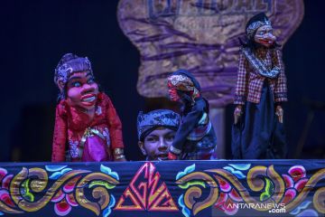 Dalang Rian Nugraha Tresna Sunagar mementaskan Wayang Golek dalam rangkaian acara yang dilaksanakan secara daring di Halaman Kantor Tourist Information Center ( TIC) Kabupaten Ciamis, Jawa Barat, Sabtu (12/6/2021) malam. Peringatan hari jadi Kabupaten Ciamis ke-379 itu dilangsungkan secara virtual untuk mengantisipasi penyebaran COVID-19 karena Ciamis masuk dalam status zona merah COVID-19 .ANTARA FOTO/Adeng Bustomi/aww.