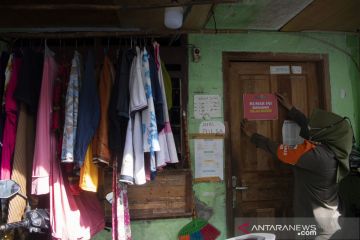 Anggota Satpol PP Kelurahan Gandaria Selatan memantau rumah warga yang sedang isolasi madiri di zona merah COVID-19 RT 006 RW 01, Gandaria Selatan, Cilandak, Jakarta Selatan, Senin (21/6/2021). Satgas Penanganan COVID-19 melaporkan kasus konfirmasi positif hingga Senin (21/6/2021) pukul 12.00 WIB bertambah 14.536 kasus sehingga total seluruhnya menjadi 2.004.445 kasus. ANTARA FOTO/Sigid Kurniawan/rwa.
