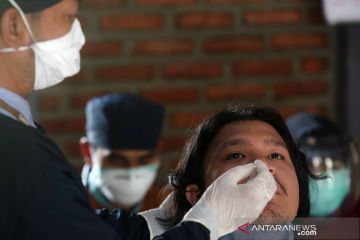 Petugas kesehatan dari Dinas Kesehatan Kota Tangerang Selatan melakukan tes cepat antigen kepada seorang warga yang tinggal di kawasan zona merah COVID-19 di Jurangmangu Barat, Tangerang Selatan, Banten, Rabu (23/6/2021). Pelacakan tersebut dilakukan karena di kawasan tersebut ditemukan 47 warga yang terkonfirmasi positif COVID-19. ANTARA FOTO/Muhammad Iqbal/wsj.