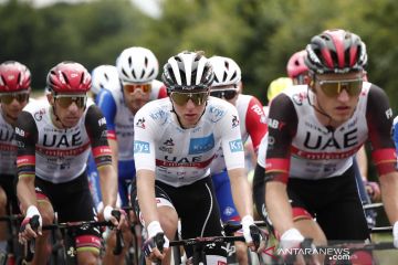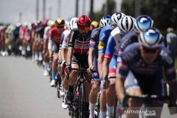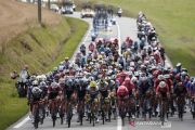 Pebalap sepeda memacu kecepatan pada Etape 4 Tour de France di Prancis, Selasa (29/6/2021). Etape 4 tersebut menempuh jarak sekitar 150,4 km dari Redon menuju ke Fougeres. ANTARA FOTO/REUTERS/Benoit Tessier/wsj.