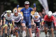 Pebalap sepeda dari tim DeceuninckâQuick-Step, Mark Cavendish asal Inggris mengangkat kedua tangannya usai melintasi garis finis pada posisi pertama di Etape 4 Tour de France di Prancis, Selasa (29/6/2021). Etape 4 tersebut menempuh jarak sekitar 150,4 km dari Redon menuju ke Fougeres. ANTARA FOTO/REUTERS/Guillaume Horcajuelo/wsj.