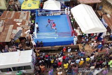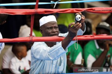 Seorang penonton memotret petinju anak yang sedang bertanding mengikuti turnamen di Iyana-ipaja, 26 Juni 2021. ANTARA FOTO/REUTERS/pras.