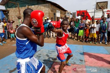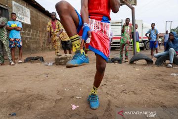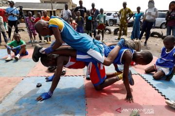 Petinju muda mengikuti turnamen di Iyana-ipaja, 26 Juni 2021. ANTARA FOTO/REUTERS/Seun Sanni/pras.
