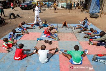 Anak-anak berlatih di luar sasana tinju di taman Adura, Lagos, Nigeria, 5 Juni 2021. ANTARA FOTO/REUTERS/Temilade Adelaja/pras.