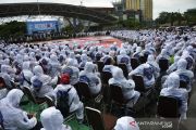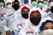 Sejumlah relawan mengikuti peluncuran Satgas Detektor di Lapangan Karebosi Makassar, Sulawesi Selatan, Jumat (2/7/2021). Peluncuran Satgas Detektor yang merupakan bagian program Makassar Recover COVID-19 tersebut sebagai langkah pemerintah dalam penanganan COVID-19 dengan pendekatan pemeriksaan awal dan pengawasan yang melibatkan masyarakat umum. ANTARA FOTO/Abriawan Abhe/aww.