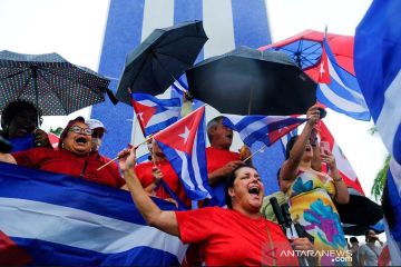 Emigran di lingkungan Little Havana menghadiri pawai ketika komunitas melakukan aksi protes terkait memburuknya ekonomi Kuba di Miami, Florida, AS (13/7/2021). ANTARA FOTO/REUTERS/Maria Alejandra Cardona/aww.