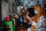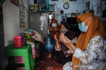 Pekurban menyaksikan pemotongan hewan kurban secara daring di Nyengseret, Bandung, Jawa Barat, Selasa (20/7/2021). Hal itu guna menghindari kerumunan serta mencegah risiko penularan COVID-19. ANTARA FOTO/Raisan Al Farisi/aww.