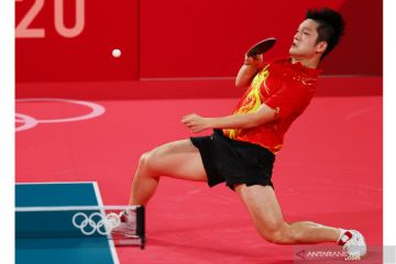 Petenis meja tunggal putra China Fan Zhendong (kiri) mengembalikanbola ke arah lawannya petenis meja putra Taiwan Lin Yun-Ju dalam laga semi final tunggal putrra tenis meja Olimpiade Tokyo 2020, di Tokyo Metropolitan Gymnasium, Tokyo, Jepang, Kamis (29/7/2021). Fan Zhendong melaju ke babak final setelah mengalahka Lin Yun Ju 4-3 (6-11, 11-9, 14-12, 13-15, 11-9, 9-11, dan 11-8), ANTARA FOTO/Reuters-Luisa Gonzalez/hp.