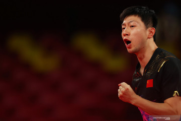 Petenis meja China Ma Long mengepalkan tangannya setelah meraih satu poin dari lawannya yang juga rekan senegaranya Fan Zhendong dalam laga final tinggal putra Olimpiade Tokyo 2020, di Tokyo Metropolitan Gymnasium, Tokyo, Jepang, Jumat (30/7/2021). Ma Long berhasil meraih medali emas setelah mengalahkan Fan Zhendong 4-2 (11-4, 10-12, 11-8, 11-0, 3-11, dan 11-7). ANTARA FOTO/Reuters-Luisa Gonzalez/hp.