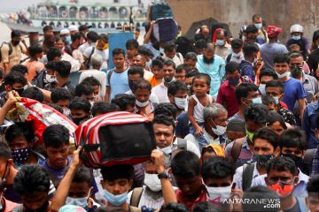 Migran dan pekerja turun dari feri yang penuh sesak saat kembali ke Ibu Kota setelah pemerintah memutuskan untuk membuka kembali industri ekspor termasuk pabrik garmen di tengah penguncian seluruh wilayah di Terminal Feri Mawa, Munshiganj, Bangladesh, Minggu (1/8/2021). ANTARA FOTO/REUTERS/Mohammad Ponir Hossain/rwa.