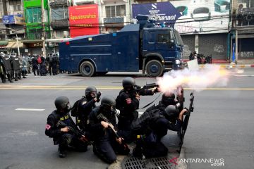 Polisi menembak gas air mata ke arah demonstan saat unjuk rasa terkait penanganan COVID-19 di Bangkok, Thailand, Sabtu (7/8/2021). ANTARA FOTO/REUTERS/Soe Zeya Tun/foc.