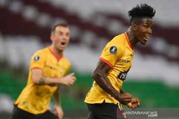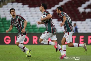 Pemain Fluminense Fred berlari sambil membawa bola usai membobol gawang Barcelona pada pertandingan perempat final leg pertama Kejuaraan Piala Libertadores di Stadion Maracana, Rio de Janeiro, Brasil, Kamis (12/8/2021). Pertandingan tersebut berakhir imbang 2-2. ANTARA FOTO/Sergio Moraes/Pool via REUTERS/wsj.