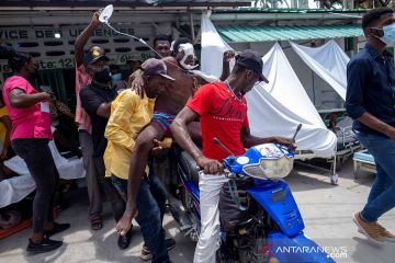 Seorang pasien berbaring di tempat tidur di luar rumah sakit setelah gempa berkekuatan 7,2, di Les Cayes, Haiti, Senin (16/8/2021). Gempa yang terjadi pada 14 Agustus lalu itu mengakibatkan korban tewas mencapai sebanyak 724 orang dan korban luka 2.800 orang. ANTARA FOTO/REUTERS/Ricardo Arduengo/rwa.