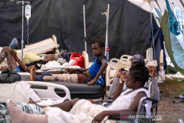 Sejumlah korban gempa bumi berkekuatan 7,2 SR pada Sabtu lalu mendapatkan perawatan di sebuah tenda darurat di halaman Rumah Sakit Ofatma di Les Cayes, Haiti, Rabu (18/8/2021). ANTARA FOTO/REUTERS/Ricardo Arduengo/wsj.