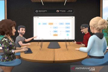 Pengujian Facebook atas aplikasi kerja jarak jauh Horizon Workrooms yang baru untuk headset realitas virtual Oculus Quest 2 ditunjukkan dalam gambar yang diperoleh Reuters (18/8/2021). ANTARA FOTO/Facebook/Handout melalui REUTERS/aww.