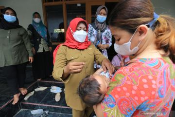 Petugas Puskesmas Balongan memberikan vitamin A kepada seorang balita di Posyandu Tegalurung, Balongan, Indramayu, Jawa Barat, Selasa (31/08/2021). Dinas Kesehatan Indramayu mulai mengaktifkan kembali kegiatan posyandu desa yang sempat terhenti sejak pandemi COVID-19 dengan memperketat protokol kesehatan. ANTARA FOTO/Dedhez Anggara/wsj.